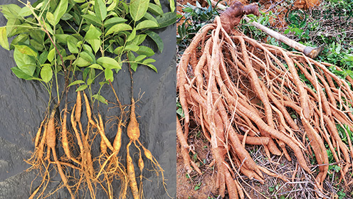 劣質(zhì)苗結(jié)薯特點 收獲期主根為木質(zhì)薯,其他分根薯細小,整棵重量少